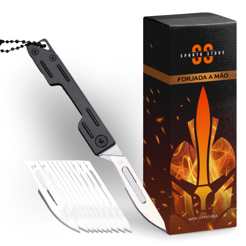 Canivete Esparta™ • 100% Aço Inoxidável (+10 LÂMINAS GRÁTIS)