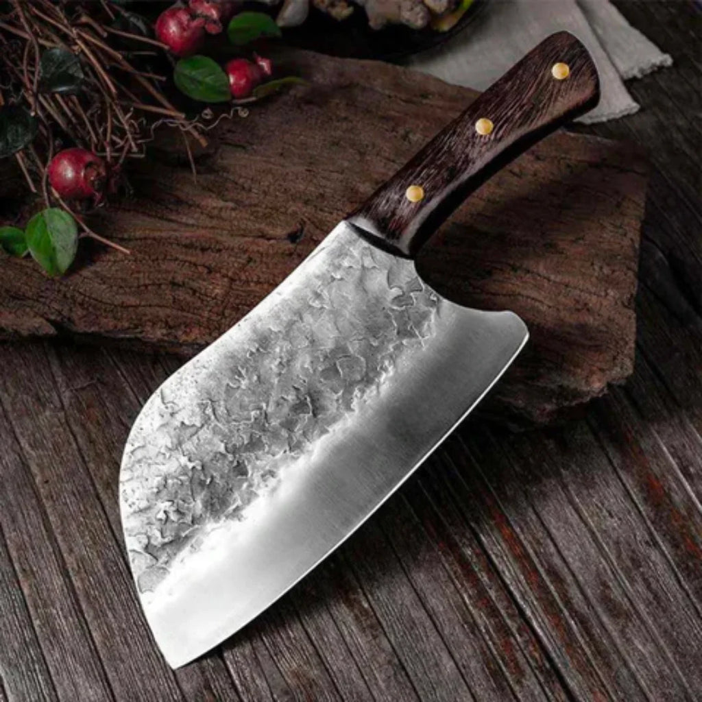 Suas Lâminas são forjadas a mão na mais alta qualidade de aço da Cutelaria. Um aço que confere alto grau de força, tração, dureza e resistência ao desgaste.