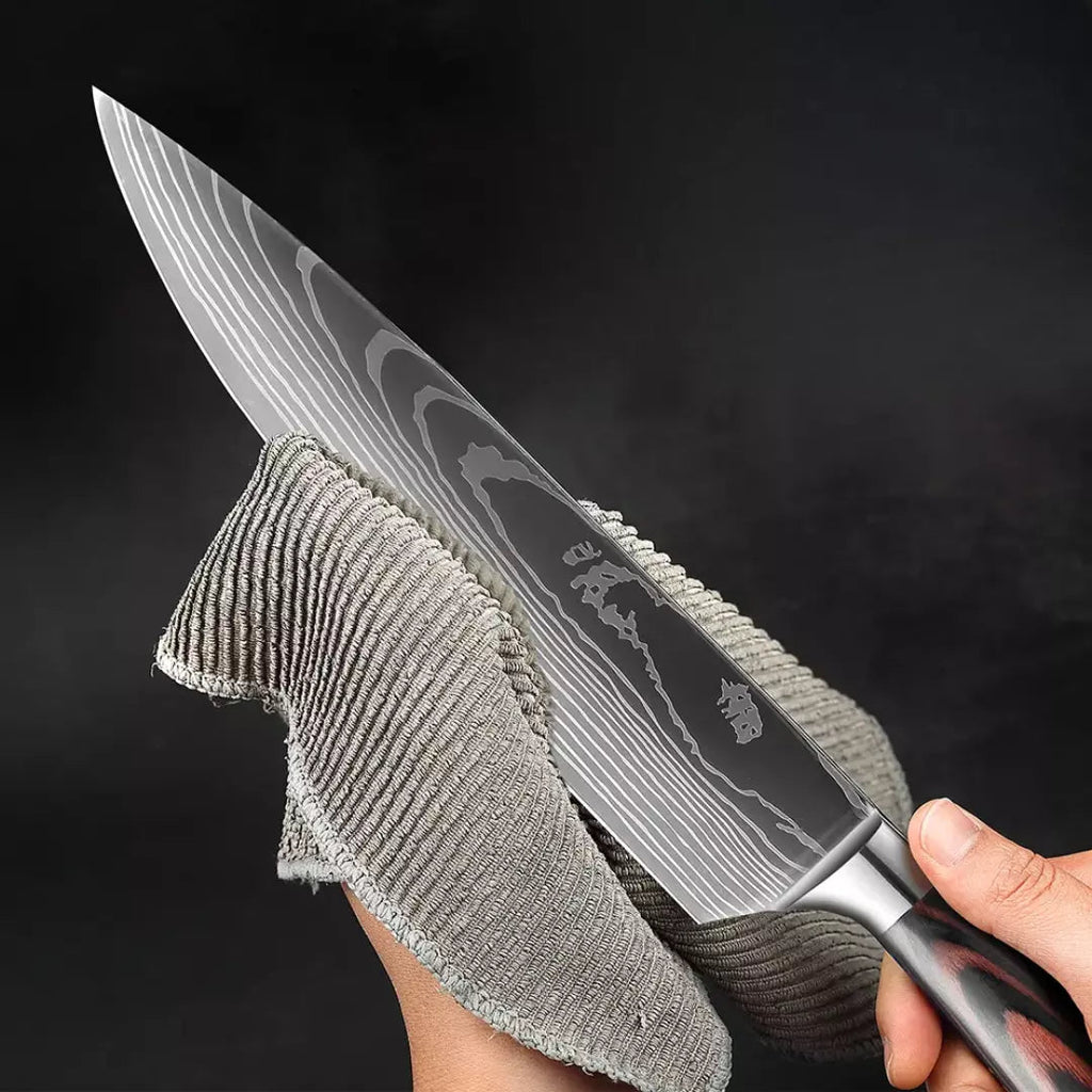 Sua lâmina é forjada à mão na mais alta qualidade da cutelaria. Seu material confere um alto grau de força, tração, dureza e resistência ao desgaste. Possui um poder de corte muito superior, podendo manter seu fio de corte afiado por até 5x mais tempo que outras facas.