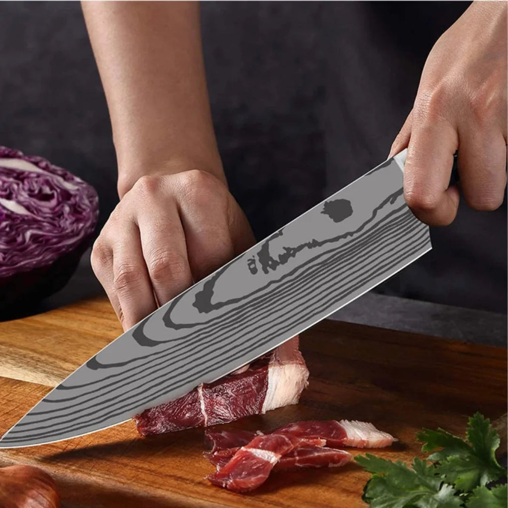 Faca Profissional Acabamento em Damasco • Faca Chef Black Esparta™